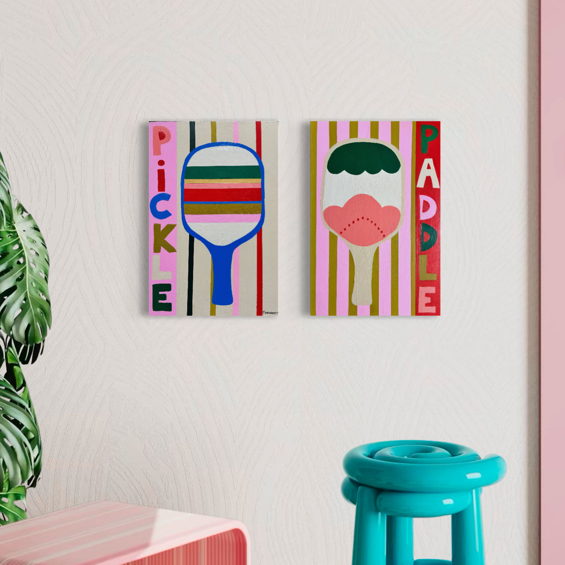 A funky striped art print featuring Kristina’s cute pickleball paddle design. Perfect to brighten up your home or office with a bit of maximalist dopamine decor!